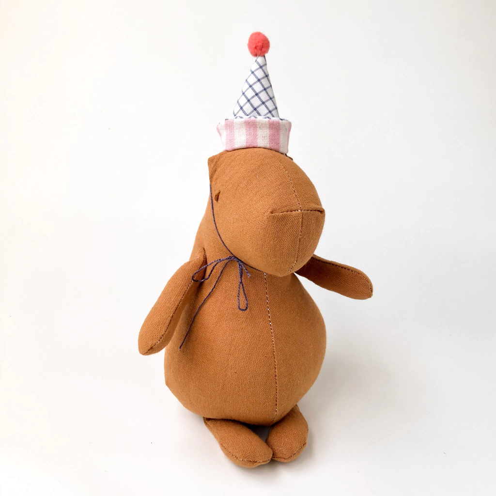 Estos carpincho estan hechos en unas telas de algoon teñido, super suavecito, bordado a mano y usa un bonete, por que puede y le queda hermoso